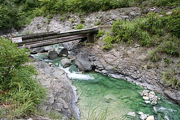 | 大湯滝への途中。川の色が緑なところが酸性くさい。 | |