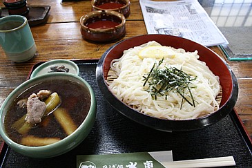 | 初めて食べた鴨南蛮うどん。つゆがあったかいなんてかるちゃーしょっく。 | |