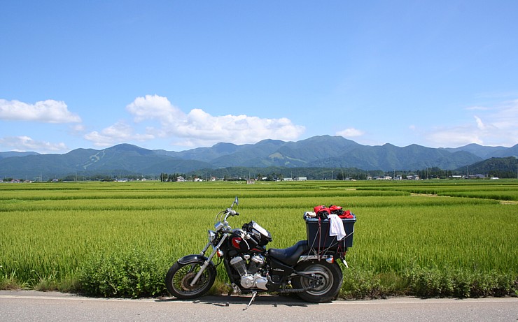 | 国道を外れてのどかな道を行く。今回は旅で数少ないのんびりした時間をすごした。 | |