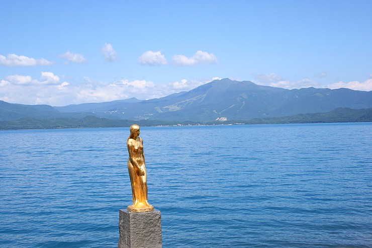 | 田沢湖はびっくりするくらい湖面が青い。ホントに真っ青。金色の辰子像とのコントラストも美しい。 | |