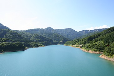 | 玉川温泉に行く途中にある玉川ダムはエメラルドグリーンの水がとても美しい。 | |
